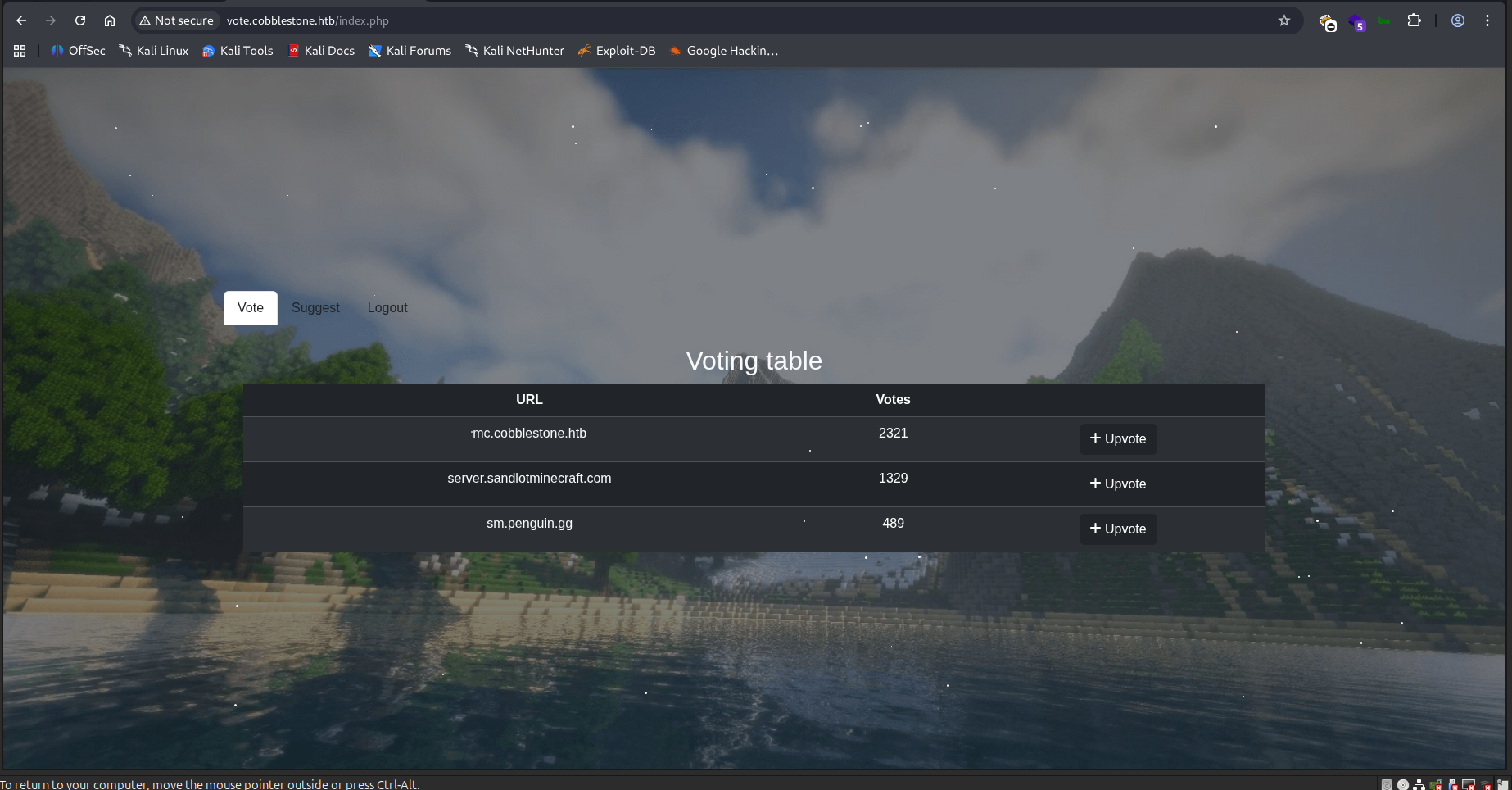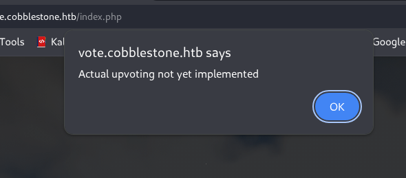 aren’t the same, logging in with the user already created at the main platform didn’t authenticate us through the vote.cobblestone.htb