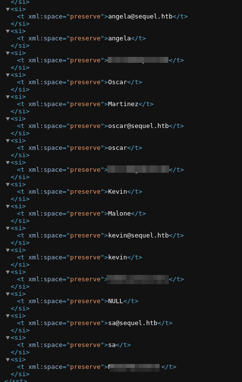 After And here are the creds in the sharedStrings xml file: