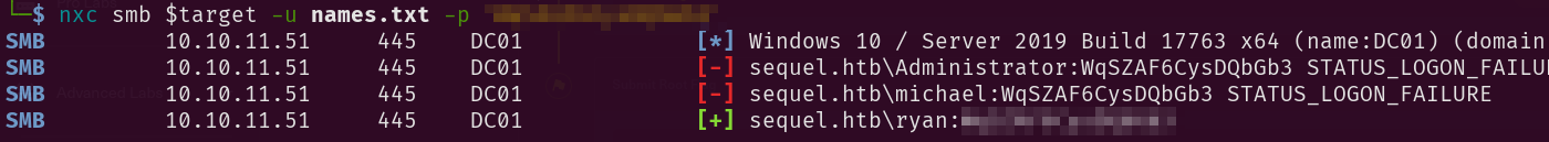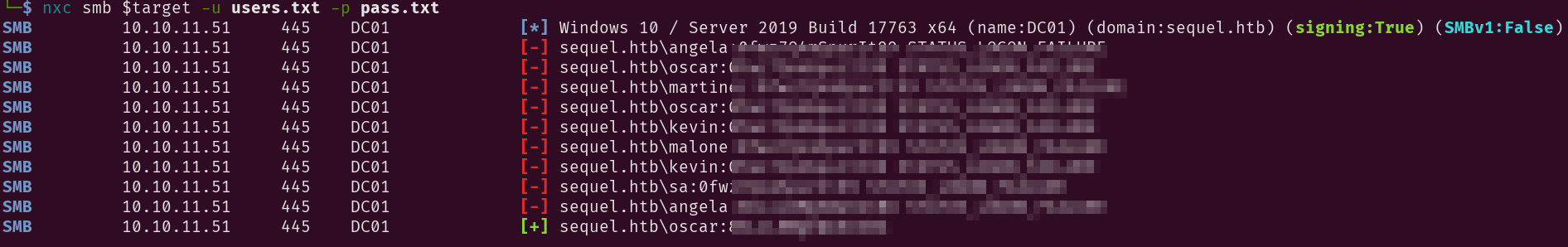 nxc smb $target -u names.txt -p '<sql_svc-password>'