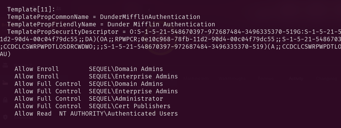 [*] Updating certificate template 'DunderMifflinAuthentication'