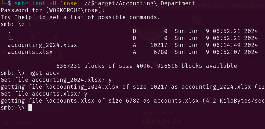 smbclient -U 'rose' //$target/Accounting\ Department