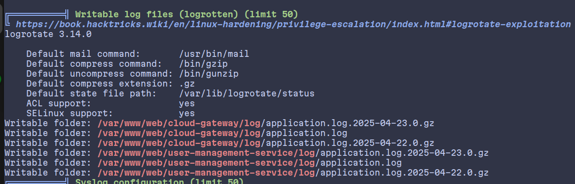 - Exploited a root script parsing writable logs.